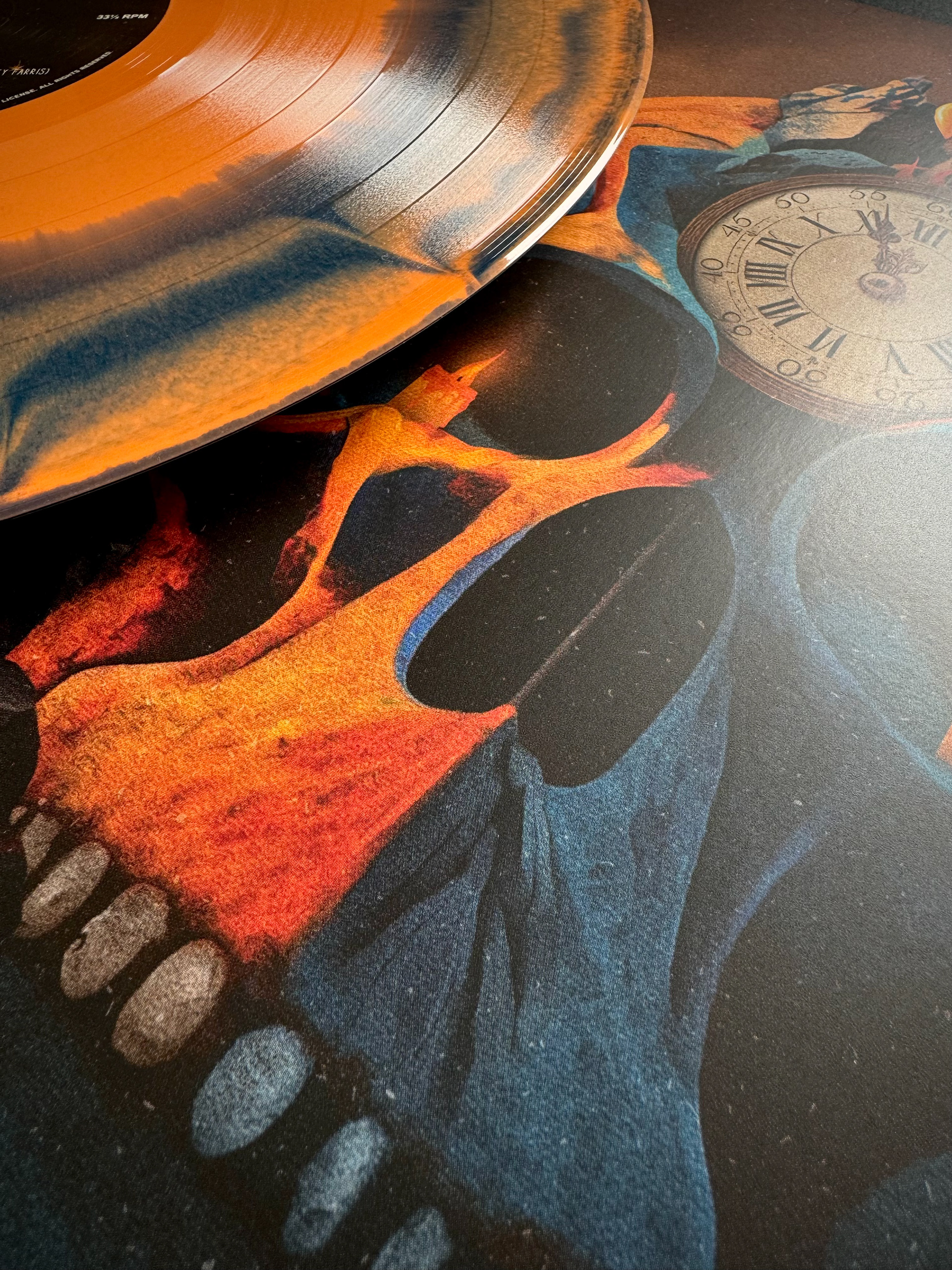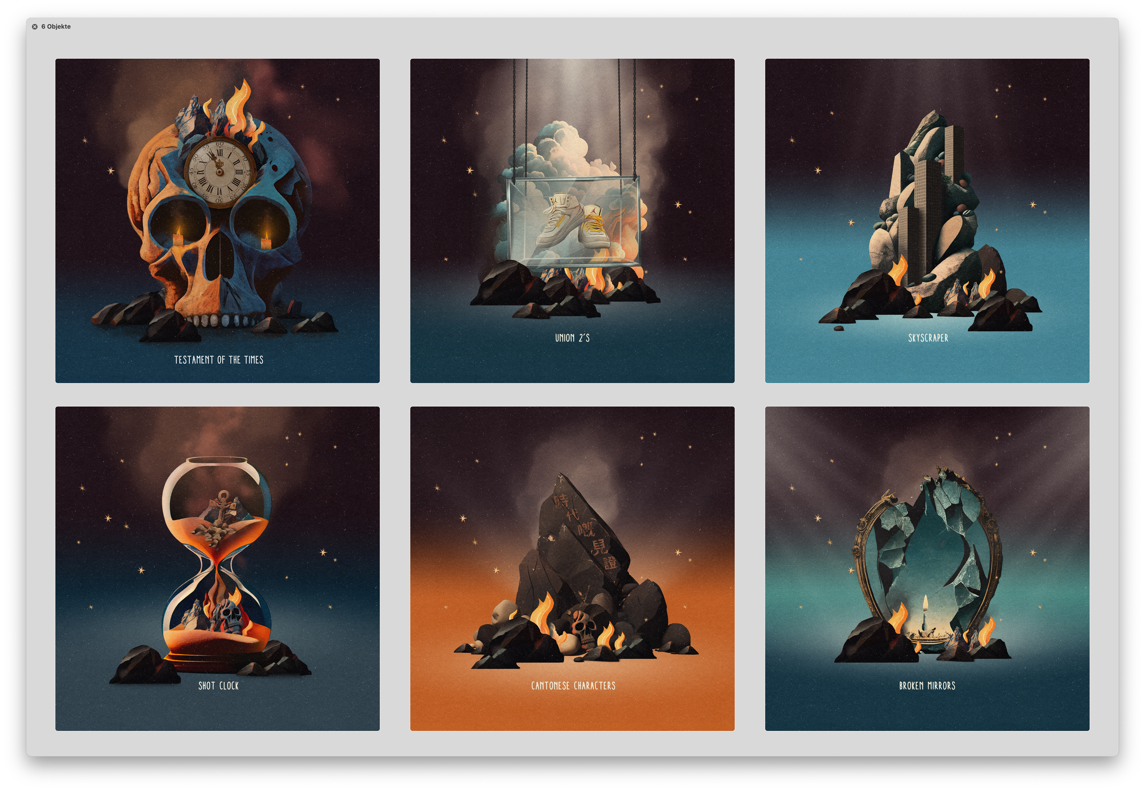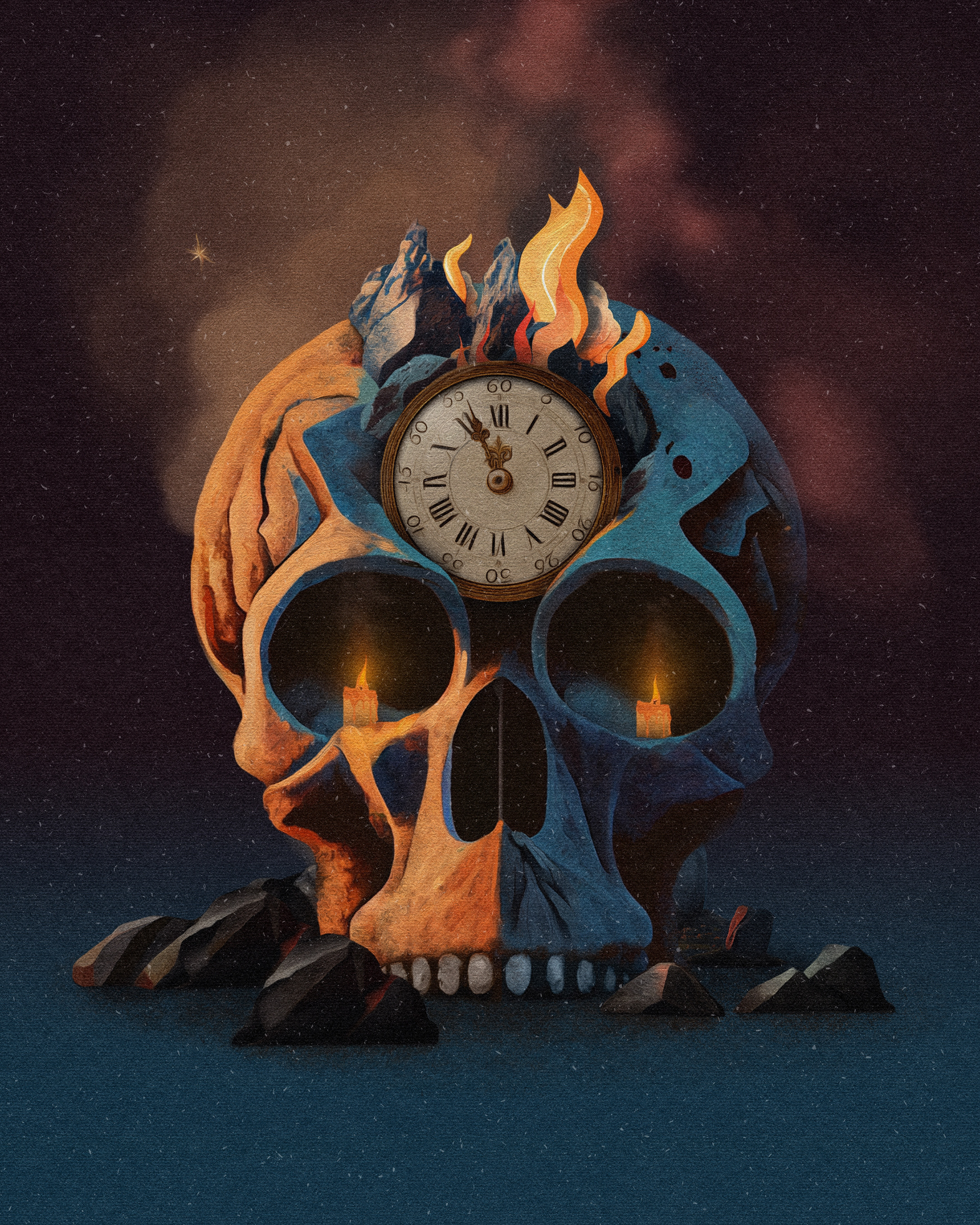 The artwork of „Testament of the Times“ delves into the intricate history of humanity, shedding light on the profound impact of current crises. From the ravages of war, starvation, to the relentless changes in our climate, suffering permeates our world. The artwork visualizes this through a poignant symbol—the skull, representing universal anguish.
