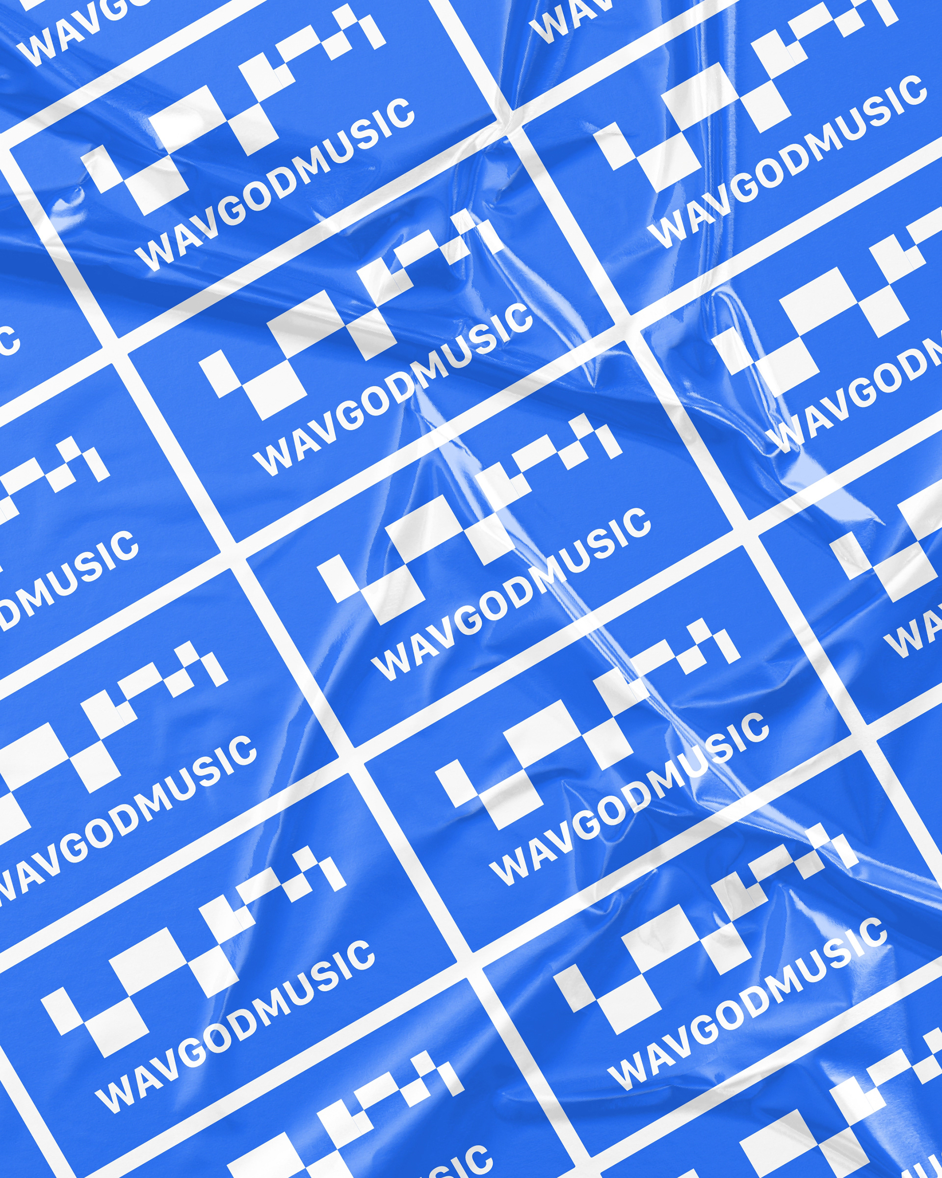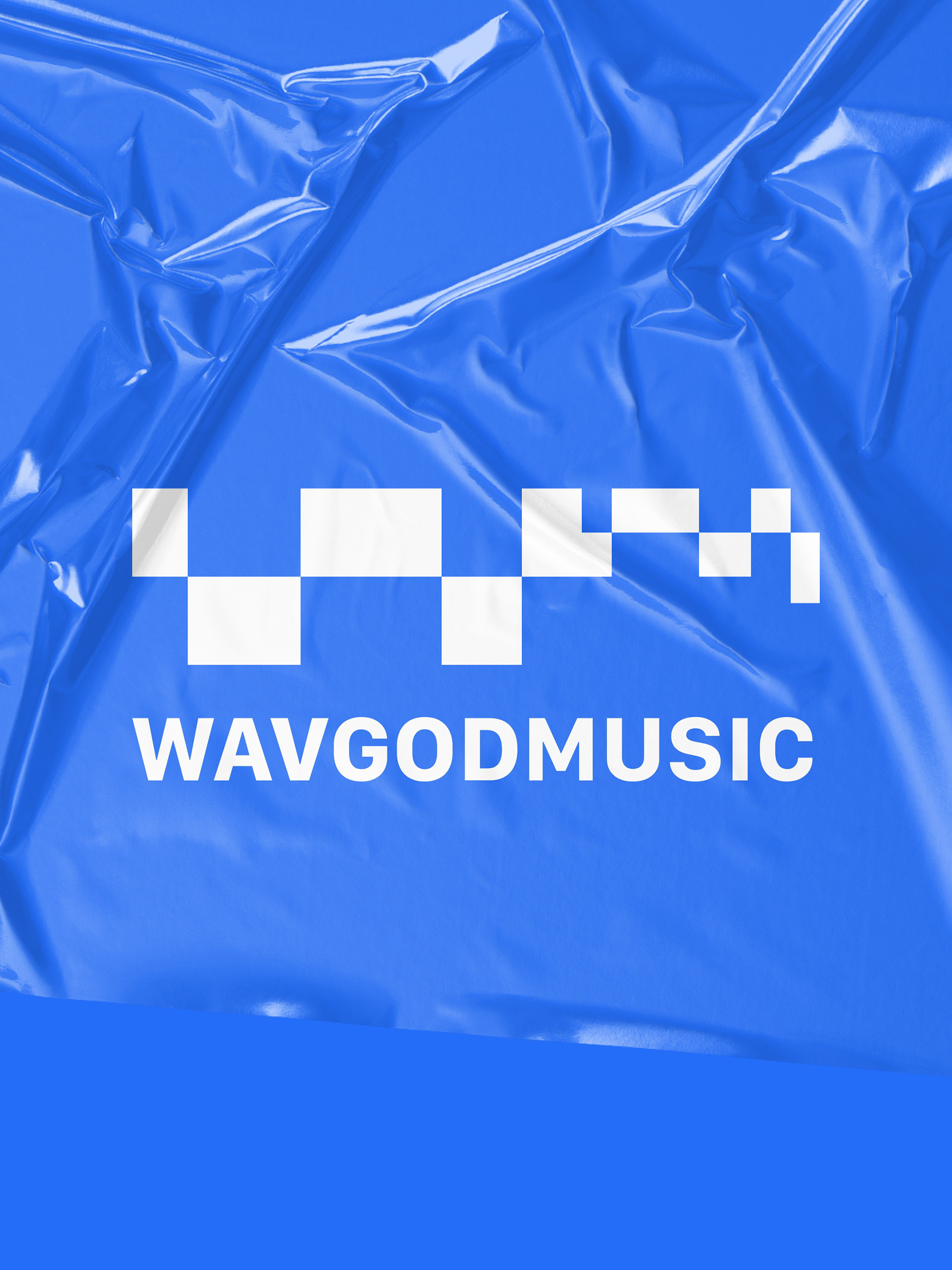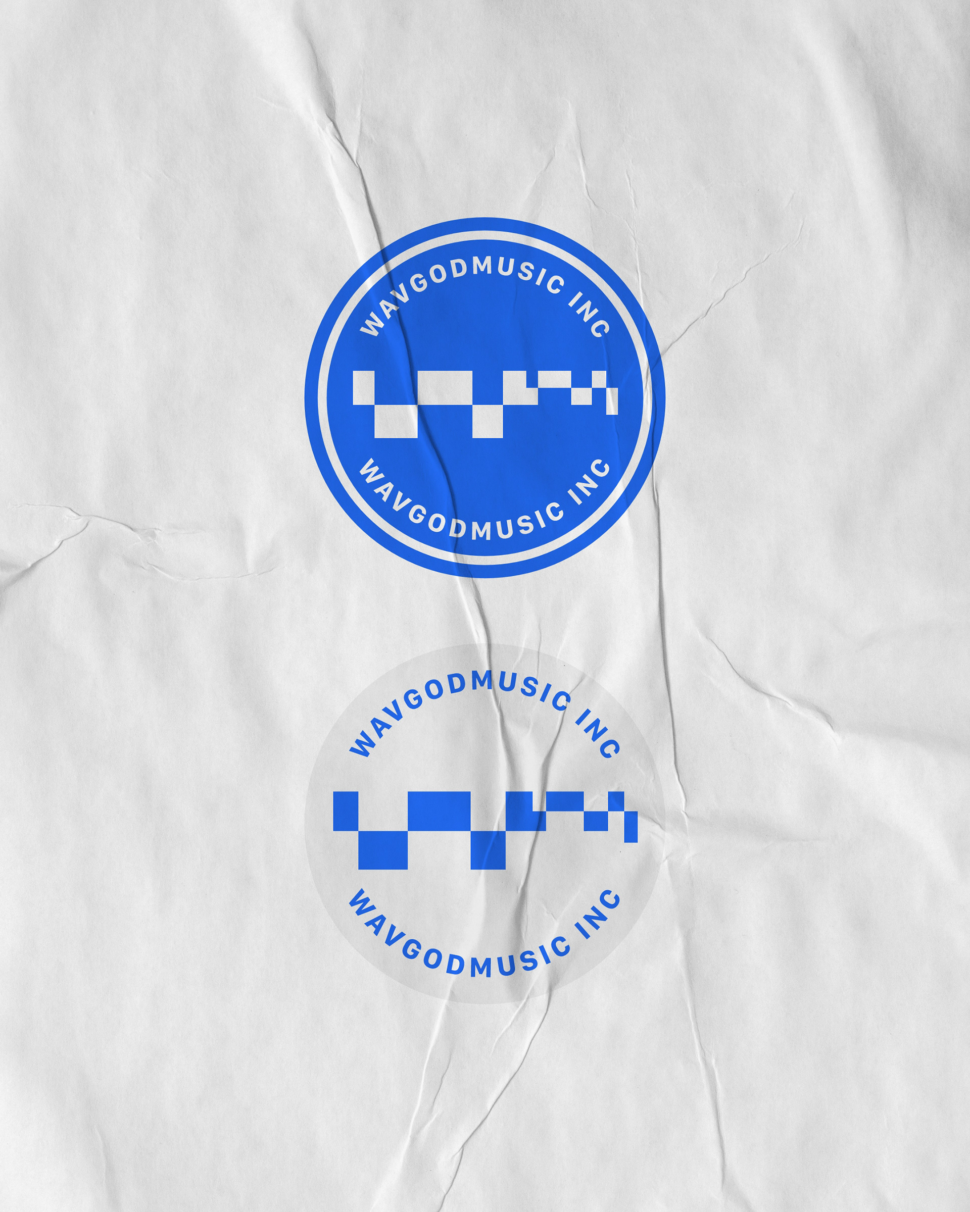 The base logo consists of 2x5 square blocks. The first 5 blocks shape the letter W and the second 5 blocks shape the letter M what obviously stands for WAVGODMUSIC.