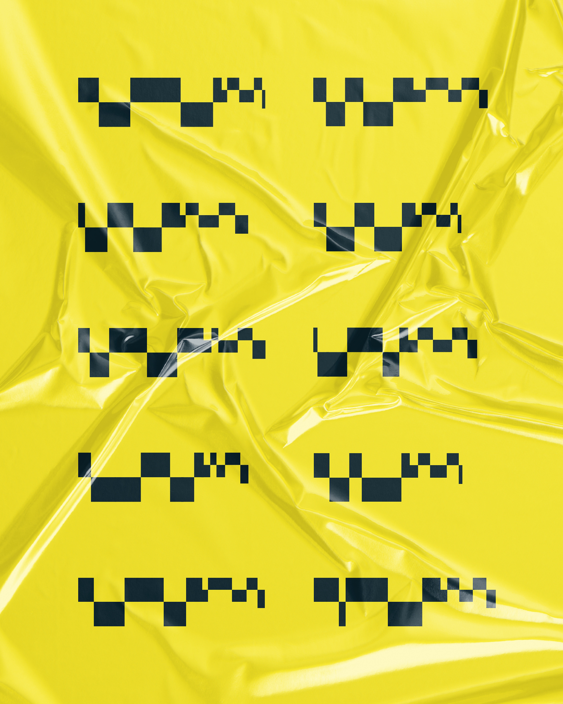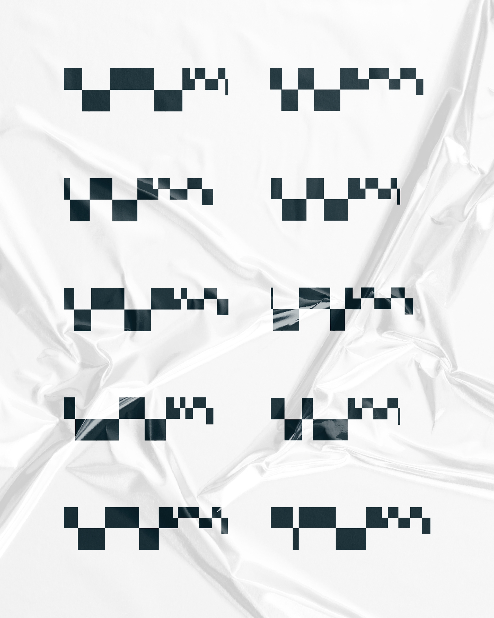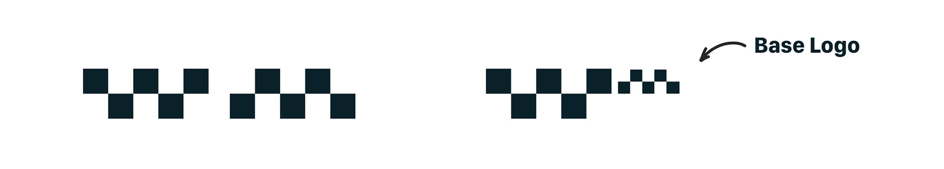 The base logo consists of 2x5 square blocks. The first 5 blocks shape the letter W and the second 5 blocks shape the letter M what obviously stands for WAVGODMUSIC.